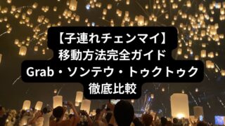 タイ 【子連れチェンマイ】移動方法完全ガイド|Grab・ソンテウ・トゥクトゥク徹底比較 1歳7ヶ月と3歳を連れて7泊8日でチェンマイに滞在しました。結論から言います。子連れチェンマイの移動は「Grab+ソンテウ」が最適解です。この記事では、Grabの使い方ソンテウの乗り方トゥクトゥクは高い?ベビーカーは必要?ナイトサファリや象... 2026.02.16 タイ