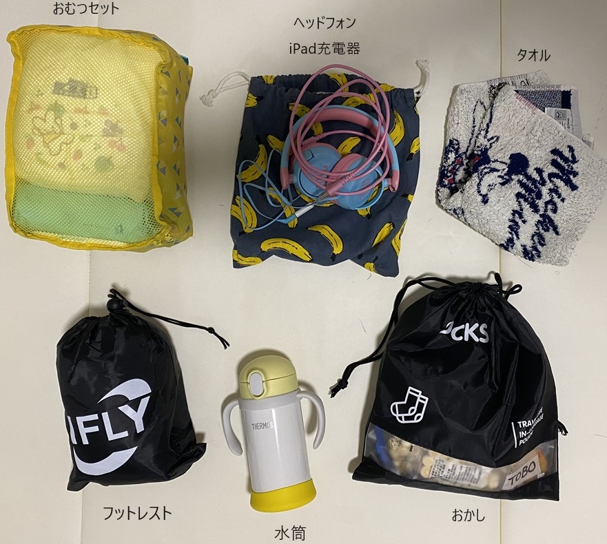 あとは、各自の手荷物リュック3つ(大人×2、2歳×1)でスタートし、0歳児用のリュックはなし。